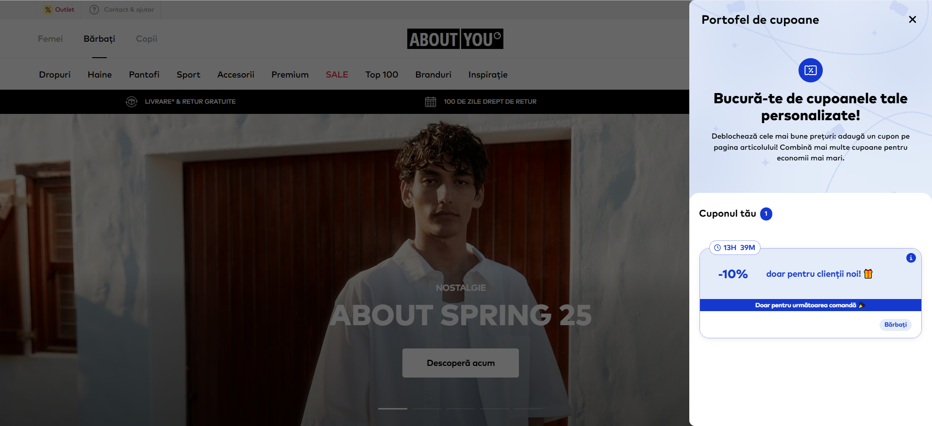 Pentru a obtine un voucher cadou pentru About You, puteti accesa site-ul nostru, care ofera coduri de reducere si vouchere actualizate pentru acest retailer. Pentru a beneficia de aceste oferte, urmati pasii de pe site pentru a obtine si aplica codul de reducere corespunzator.