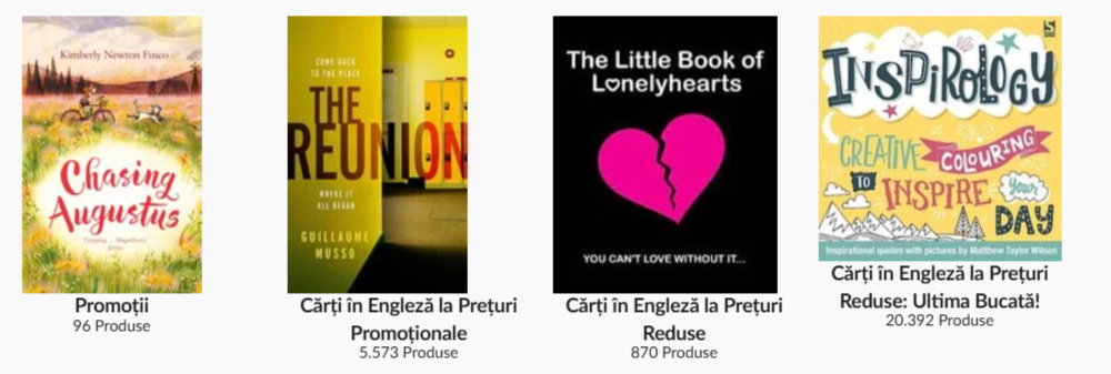 In plus, exista coduri de reducere disponibile. De exemplu, un cod ofera 10% reducere la toate produsele, valabil pana la 31 ianuarie 2025. Un alt cod ofera 15% reducere la cartile de literatura si arta; acest cod poate fi utilizat si pentru produsele deja reduse, dar nu poate fi combinat cu alte coduri.