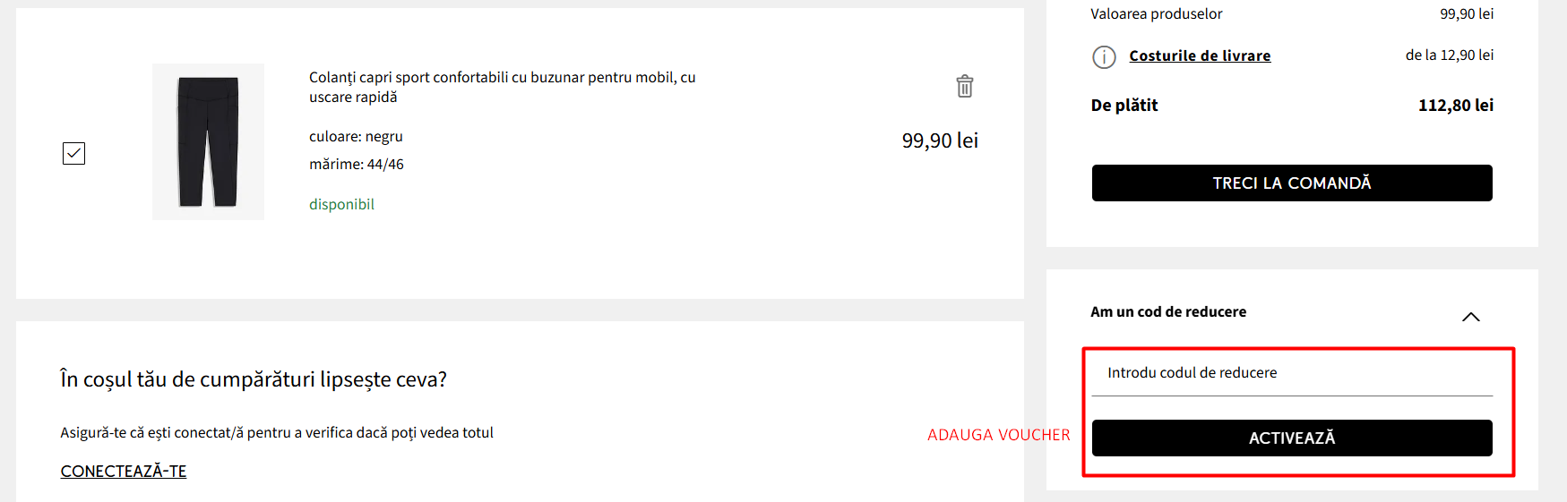 In pagina cosului de cumparaturi, veti gasi un camp dedicat pentru codul de reducere, etichetat cu "Am un cod reducere". Introduceti codul in acest camp si apasati butonul "Activati" pentru a aplica reducerea.