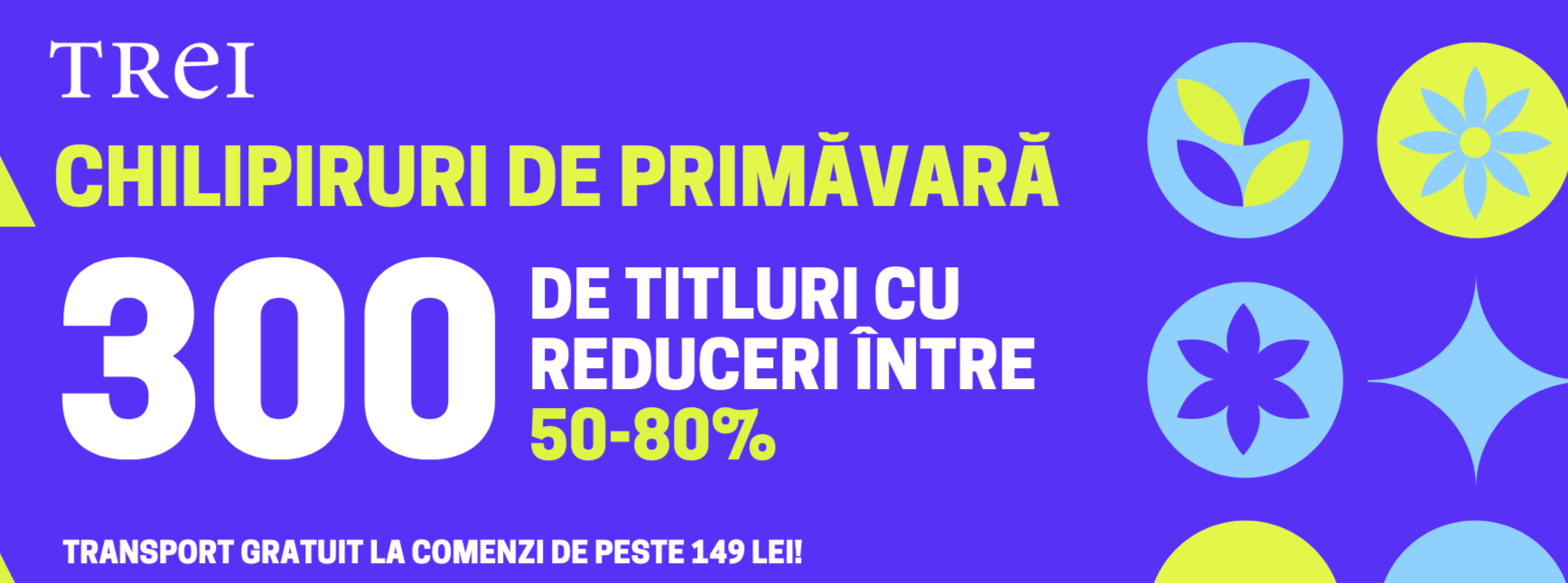 Pe langa reducerile atractive, Editura Trei ofera transport gratuit la comenzile care depasesc suma de 120 lei, ceea ce transforma fiecare achizitie intr-o experienta si mai convenabila. Mai mult, clientii care se aboneaza la newsletter-ul editurii primesc un cod promotional cu 10% reducere la prima comanda – un avantaj ideal pentru cei care vor sa-si inceapa calatoria printre paginile celor mai apreciate titluri.