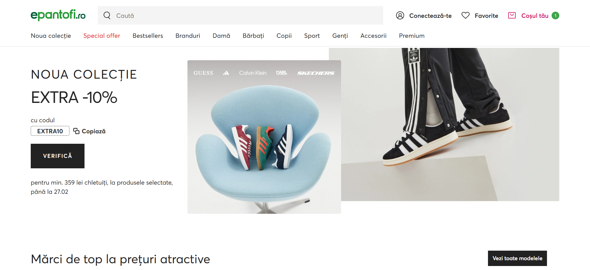 Epantofi.ro ofera peste 50.000 de produse de la branduri renumite precum Adidas, Tommy Hilfiger, Calvin Klein, Guess, Boss si New Balance, asigurand o selectie vasta pentru toate preferintele.