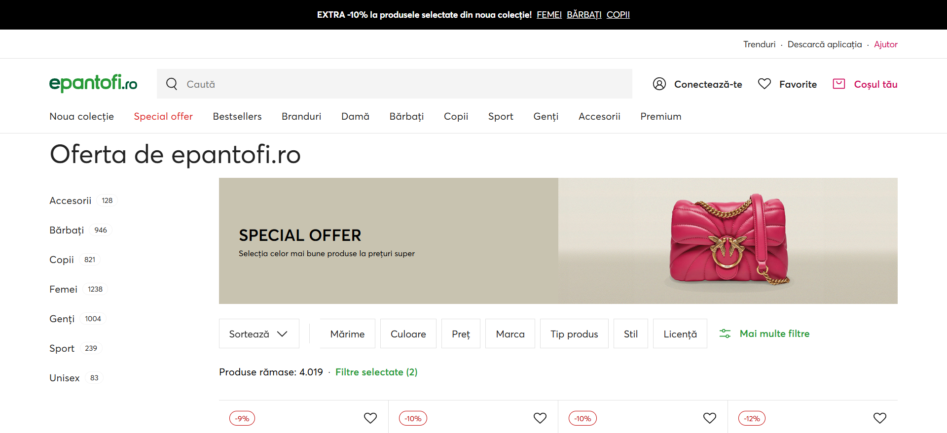 In perioadele de promotii speciale, precum Black Friday, Epantofi ofera reduceri semnificative, care pot ajunge pana la 60% la o selectie larga de produse.