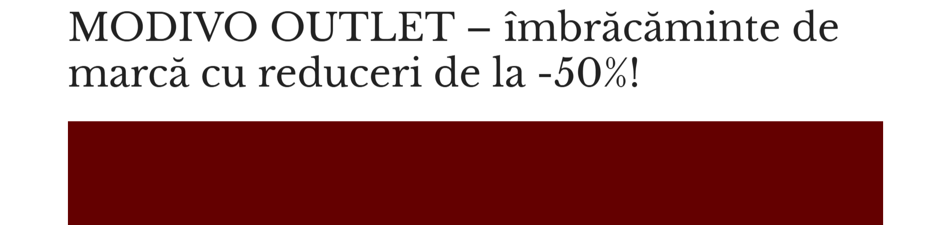 Pentru a maximiza economiile, este recomandat sa verificati periodic sectiunea "Outlet" de pe site-ul Modivo, unde sunt disponibile vouchere de pana la 50% la o gama variata de produse pentru femei, barbati si copii.