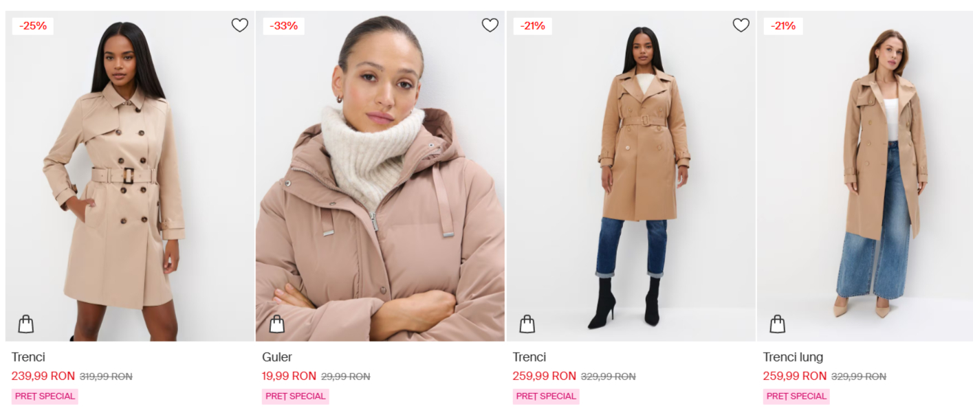 In plus, Mohito ofera voucher de pana la 50% la produse selectate, permitandu-ti sa gasesti articole de calitate la preturi reduse. Daca valoarea comenzii tale depaseste 200 lei, beneficiezi automat de transport gratuit, economisind astfel costurile de livrare. Pentru a profita de aceste promotii, asigura-te ca aplici codurile de reducere in timpul finalizarii comenzii si ca indeplinesti toate conditiile specificate pentru fiecare oferta.