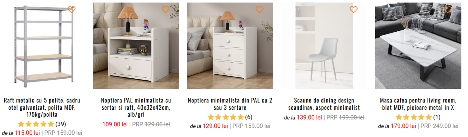 Magazinul ofera o gama larga de produse, inclusiv accesorii pentru bucatarie, living, baie, mobilier, decoratiuni, produse de gradina si bricolaj. Preturile variaza in functie de categorie, iar produsele sunt accesibile pentru orice tip de buget. De exemplu, seturile de tacamuri din otel inoxidabil sunt disponibile incepand de la 49 lei, iar paturile hanorac Huggle Hoodie pot fi gasite la preturi de aproximativ 119 lei. Magazinul ofera si o serie de reduceri periodice si oferte speciale, care permit clientilor sa achizitioneze produse la preturi reduse, oferind in acelasi timp si un program de fidelizare pentru clientii recurent.