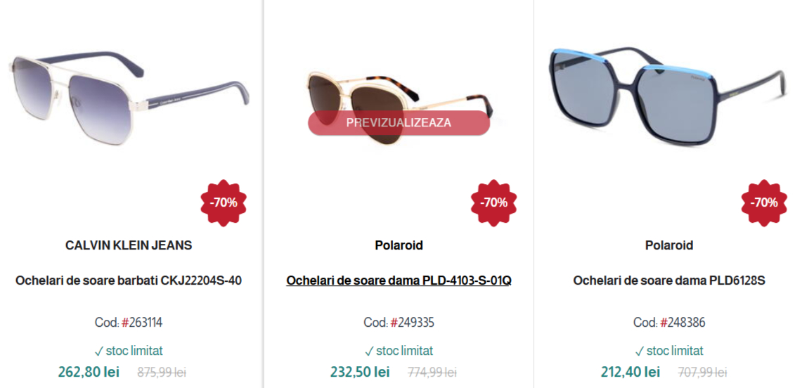 Reduceri de până la 30% la ochelari de soare